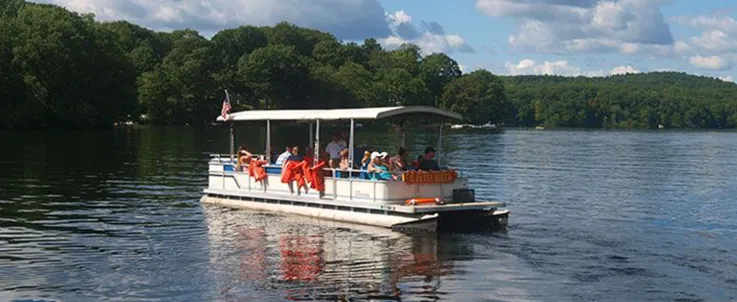 Explore Lake Quassapaug by pedal boat with two- and four-seat options available at the boat landing near Quassy Restaurant. This easy, relaxing activity is perfect for families, couples, or anyone looking to enjoy the lake at a slower pace together.