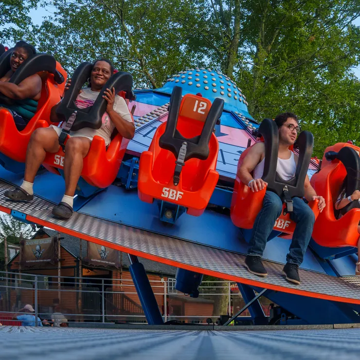Quassy's newest family thrill ride and the first in all of North America! Spin, dip and dive while facing outward on this exciting and unique ride. Dazzling at night with LED lighting top and bottom. This ride debuted at Quassy in 2016 and is made by SBF/Visa Group.