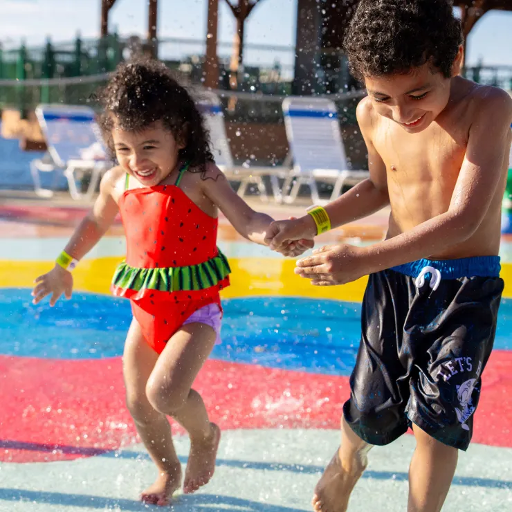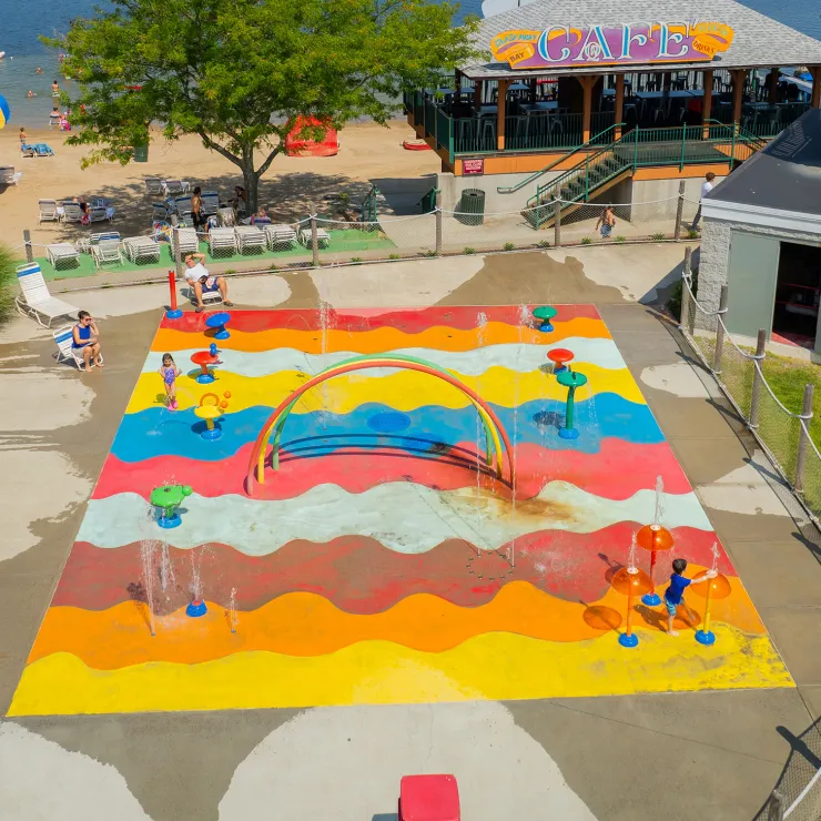 A gentle, shallow water play area designed for younger children. Features interactive water spray elements.